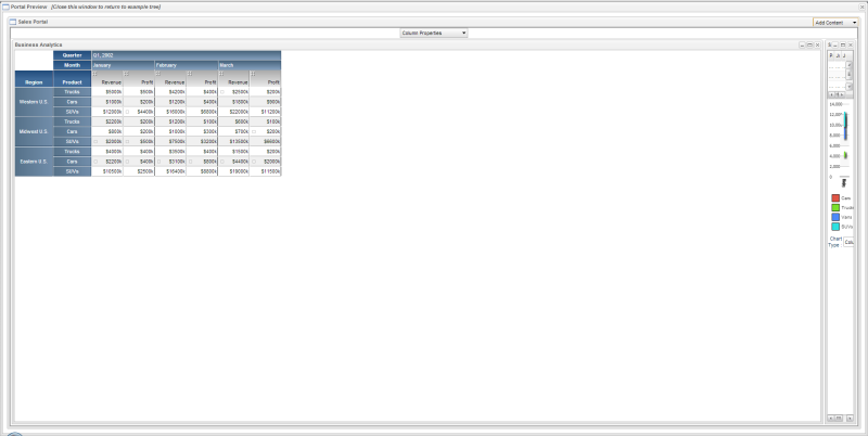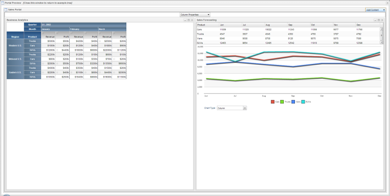 Notice that after restore the business analytics portlet became much wider and the sales forecasting much thinner, to the point that it is not useable as shown in image 2.