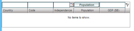 Now if you unfreeze the countryName, the population filterHeader(a ButtonItem just for simplification) will get greyed out.
