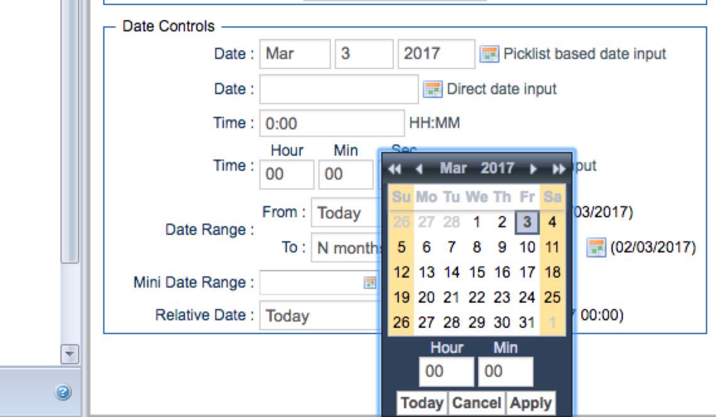 But if, after trying it, you modify the type of the 'aDate' item from "date" to "datetime" you'll see this visual glitch: